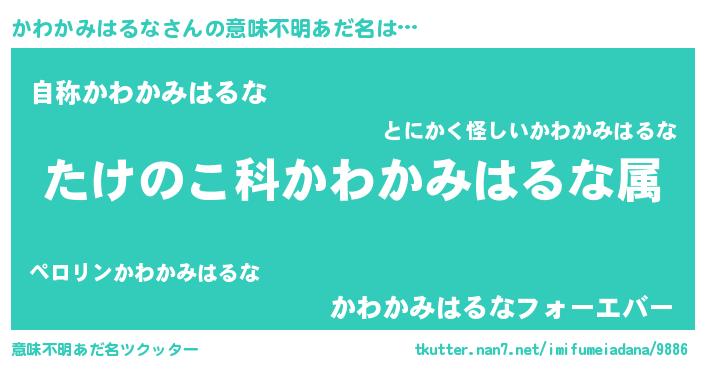 | 男性向けラノベタイトル風あだ名 | 『転生したらかわかみはるなだった件』 |