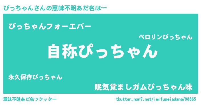 | 女子向けラノベタイトル風あだ名 | 『ぴっちゃんなんてお断りですっ。』 |