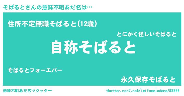| 男性向けラノベタイトル風あだ名 | 『Re:そばるとから始める異世界生活』 |