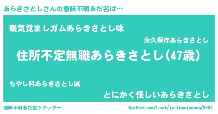 | 欧米人風あだ名 | 『あらきさとし・ステッグマイヤー』 |