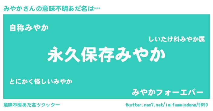 | ヘコむあだ名 | 『みやか(震え声)』『酢こんぶ』 |