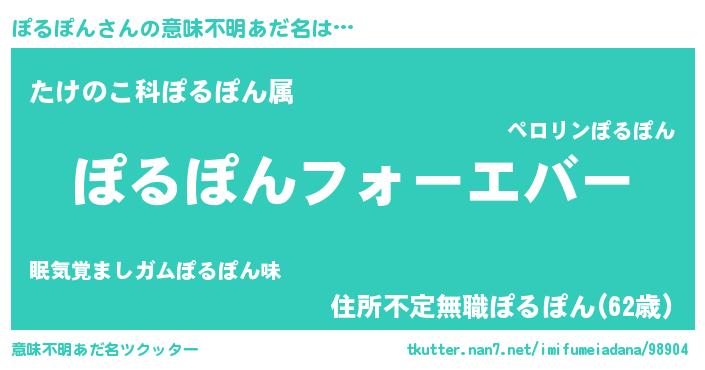 | 肩書あだ名 | 『ぽるぽん総理大臣』『ぽるぽん少尉』 |