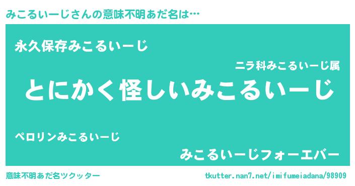 | 女子向けラノベタイトル風あだ名 | 『みこるいーじ様がみてる』 |