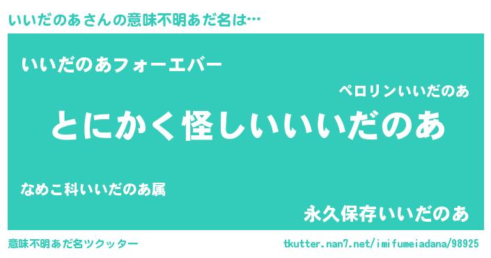 | 女子向けラノベタイトル風あだ名 | 『いいだのあは平凡を望む』 |