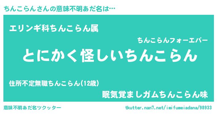| 胡散臭い通販商品みたいなあだ名 | 『信頼と実績のサプリメント…その名も「ちんこらん」』 |