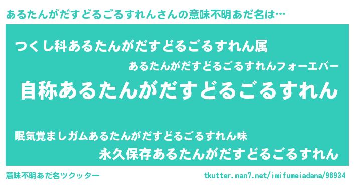 | 欧米人風あだ名 | 『ケンブリッジあるたんがだすどるごるすれん』 |