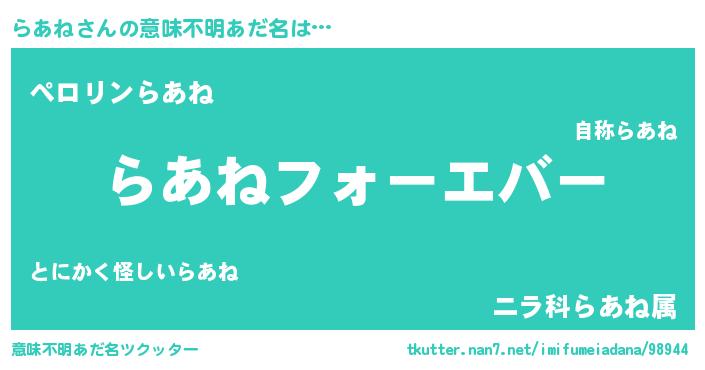 | 肩書あだ名 | 『らあね国家主席』『らあね御曹司』 |