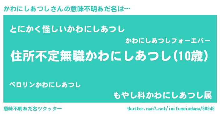 | 欧米人風あだ名 | 『ダレノガレかわにしあつし』 |