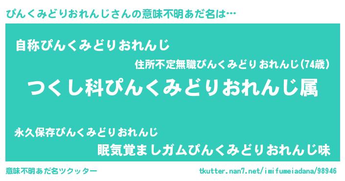 | 伝説のあだ名 | 『救世主となる技術者ぴんくみどりおれんじ』 |