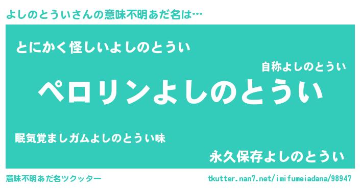 | ヒーロー風カッコイイあだ名 | 『スーパーヨシノトウイ』『暗黒騎士ヨシ』 |