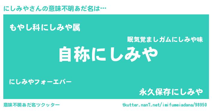 | 男性向けラノベタイトル風あだ名 | 『Re:にしみやから始める異世界生活』 |