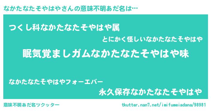 | 料理風あだ名 | 『なかたなたそやはやのトマト煮』 |