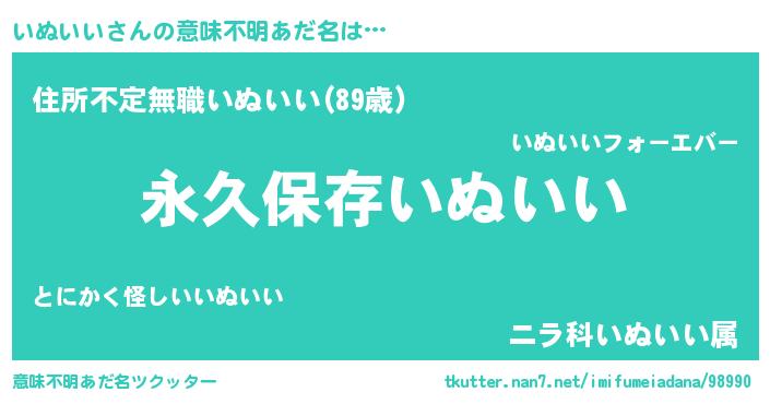 | ヒーロー風カッコイイあだ名 | 『ネオイヌイイ』『仮面イヌダー』 |