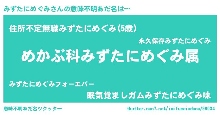 | ヘコむあだ名 | 『みずたにめぐみ(小並感)』『なまこ酢』 |