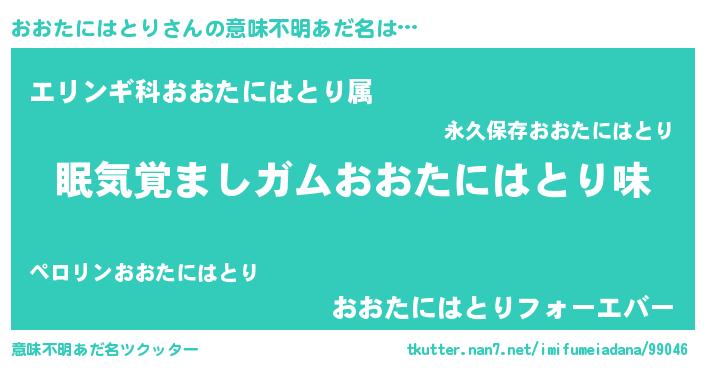| 女子向けラノベタイトル風あだ名 | 『おおたにはとり恋絵巻』 |