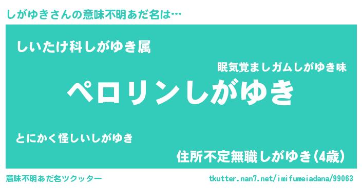 | 男性向けラノベタイトル風あだ名 | 『しがゆきの憂鬱』『緋弾のシガユキ』 |