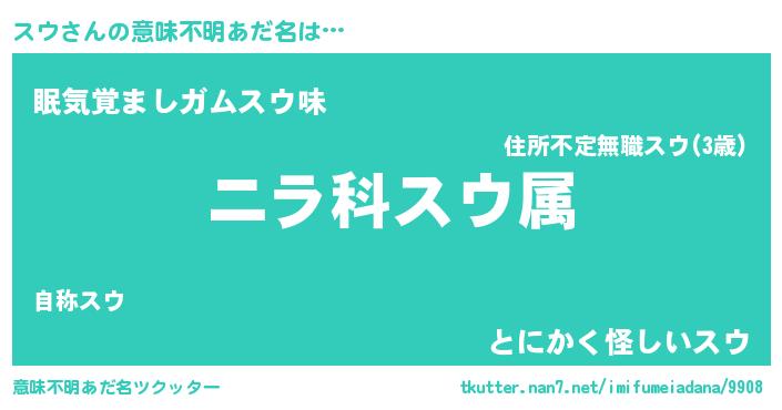 | ヒーロー風カッコイイあだ名 | 『天空の使者スウ』『炎刃騎士スウ』 |