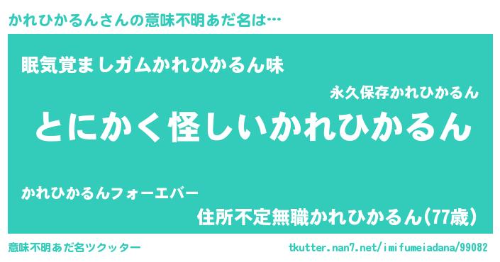 | 男性向けラノベタイトル風あだ名 | 『かれひかるんの嫁は女の子じゃないと思った?』 |