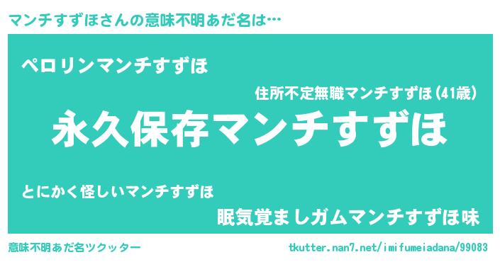| 男性向けラノベタイトル風あだ名 | 『マンチすずほという概念が存在しない退屈な世界 』 |