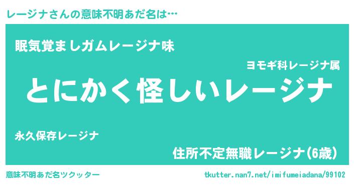 | 男性向けラノベタイトル風あだ名 | 『緋弾のレージナ』『魔弾の王とレージナ』 |