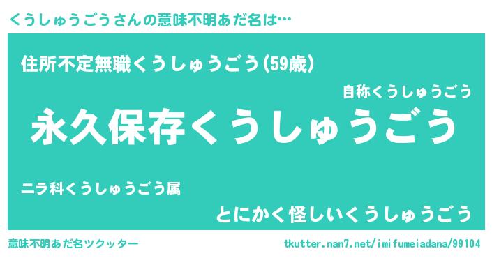 | ヘコむあだ名 | 『くうしゅうごう(笑)』『くうっ子』 |