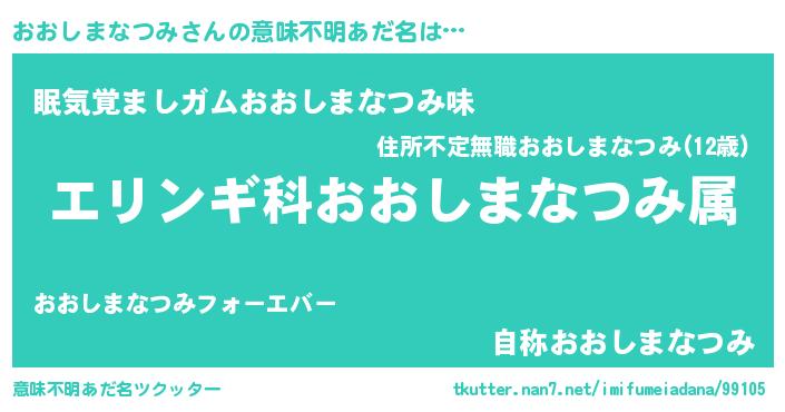 | 胡散臭い通販商品みたいなあだ名 | 『100人中100人が認めたイリジウム磁石…その名も「おおしまなつみ」』 |