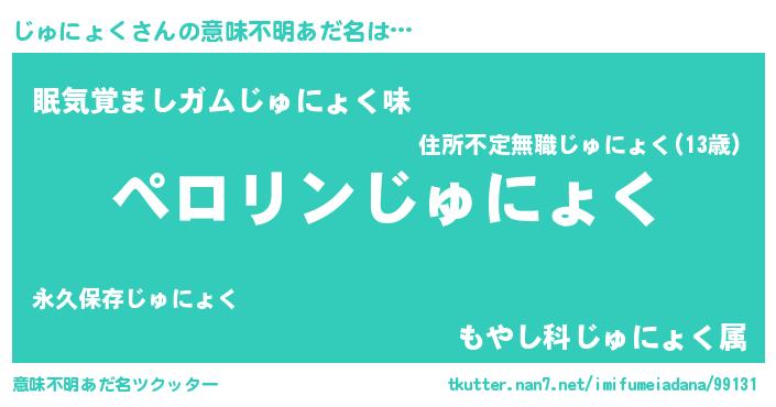 | 胡散臭い通販商品みたいなあだ名 | 『必ず成功する水晶球…その名も「じゅにょく」』 |