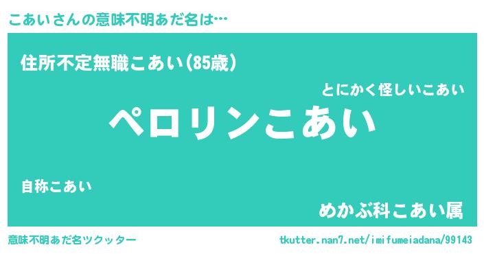 | 胡散臭い通販商品みたいなあだ名 | 『必ず成功する水晶球…その名も「こあい」』 |