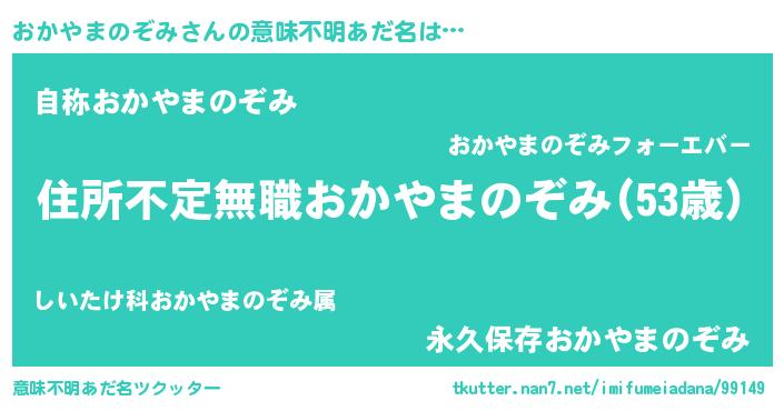 | 伝説のあだ名 | 『古文書に記された暗殺者おかやまのぞみ』 |