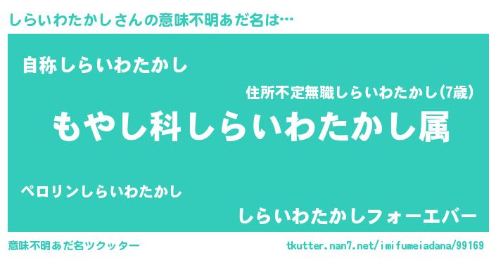 | 胡散臭い通販商品みたいなあだ名 | 『テレビで話題の高麗人参…その名も「しらいわたかし」』 |