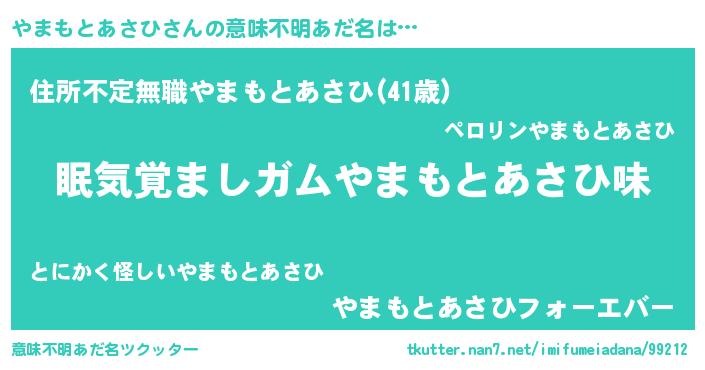 | 伝説のあだ名 | 『魔王と互角に渡り合う占い師やまもとあさひ』 |