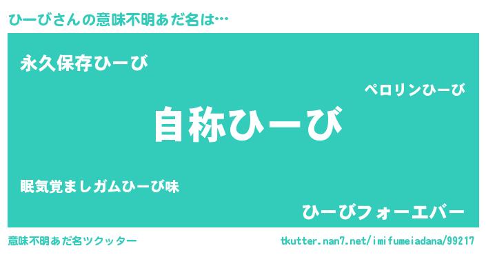 | 欧米人風あだ名 | 『ケンブリッジひーび』『マイケルひーび』 |