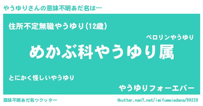 | ヒーロー風カッコイイあだ名 | 『仮面ヤウダー』『ウルトラやうゆりマン』 |