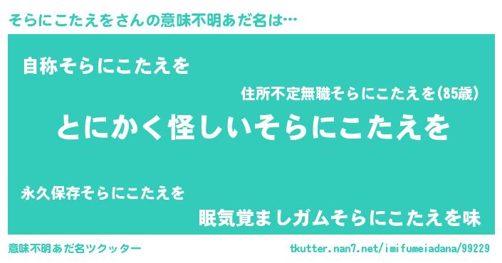 | ポケモン風あだ名 | 『ヒソラニコタエヲ』『ソラセウス』 |