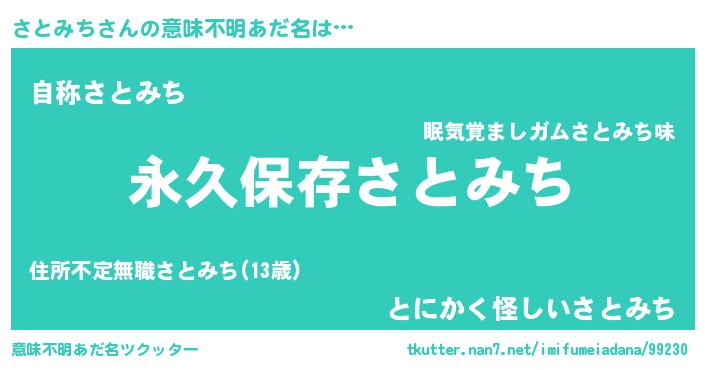 | 男性向けラノベタイトル風あだ名 | 『さとみちという概念が存在しない退屈な世界 』 |