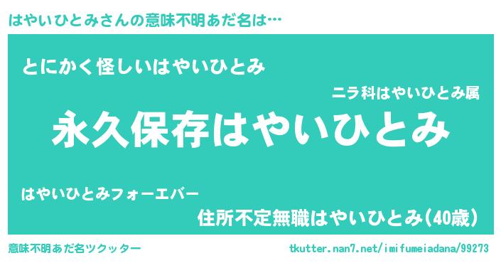 | 胡散臭い通販商品みたいなあだ名 | 『来世でも幸せになれる水素水…その名も「はやいひとみ」』 |