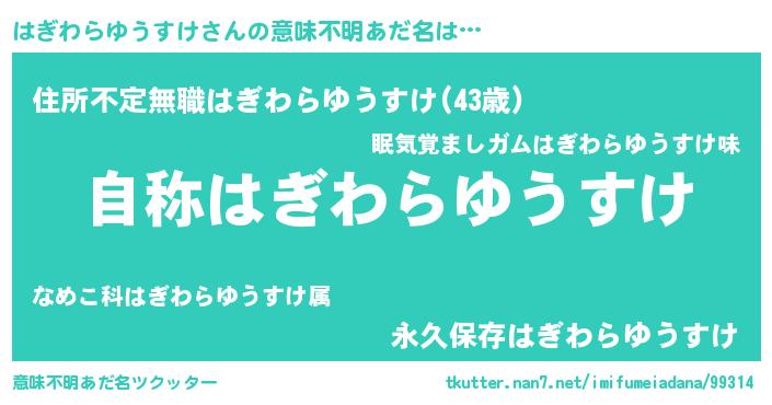 | ヘコむあだ名 | 『はぎわらゆうすけ(笑)』『はぎ太郎』 |
