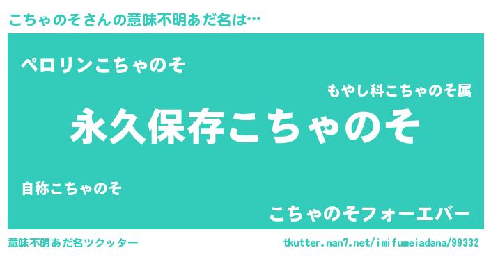 | ヘコむあだ名 | 『こちゃのそ(小並感)』『こちにー』 |
