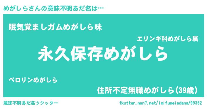 | ヘコむあだ名 | 『めがしら(爆)』『めがにゅー』 |