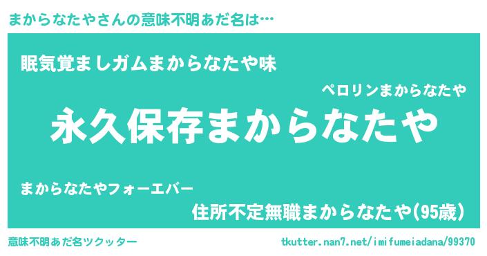 | 男性向けラノベタイトル風あだ名 | 『まからなたやという概念が存在しない退屈な世界 』 |