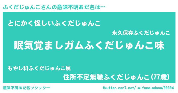| 女子向けラノベタイトル風あだ名 | 『死神ふくだじゅんこの再婚』 |
