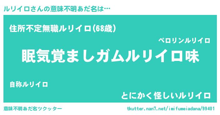 | ポケモン風あだ名 | 『ルリゴンZ』『ルックウザ』 |