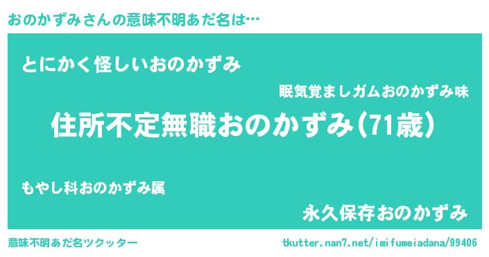 | 男性向けラノベタイトル風あだ名 | 『この素晴らしい世界におのかずみを!』 |