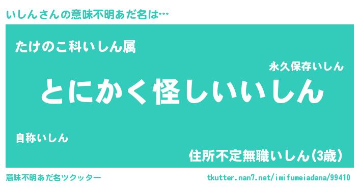 | 男性向けラノベタイトル風あだ名 | 『いしんに滅ぼされるだけの簡単なお仕事です』 |