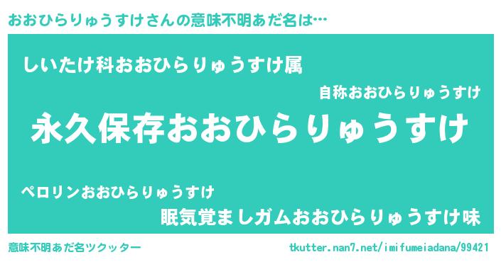 | ヘコむあだ名 | 『おおひらりゅうすけ(遠い目)』『おおにー』 |