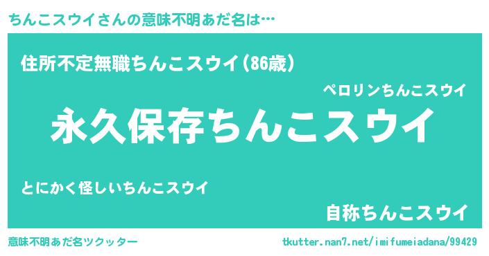 | ヒーロー風カッコイイあだ名 | 『ネオチンコスウイ』『仮面チンダー』 |