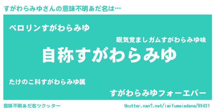 | 胡散臭い通販商品みたいなあだ名 | 『ガンによく効くアガリクス…その名も「すがわらみゆ」』 |