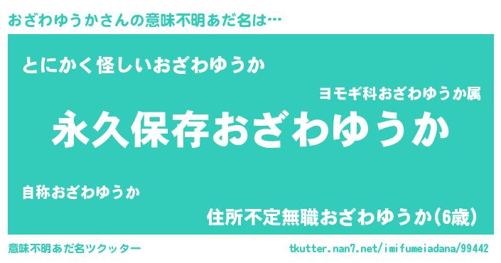 | 男性向けラノベタイトル風あだ名 | 『おざわゆうかという概念が存在しない退屈な世界 』 |