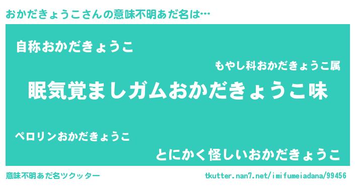 | 欧米人風あだ名 | 『ダニエルおかだきょうこ』 |