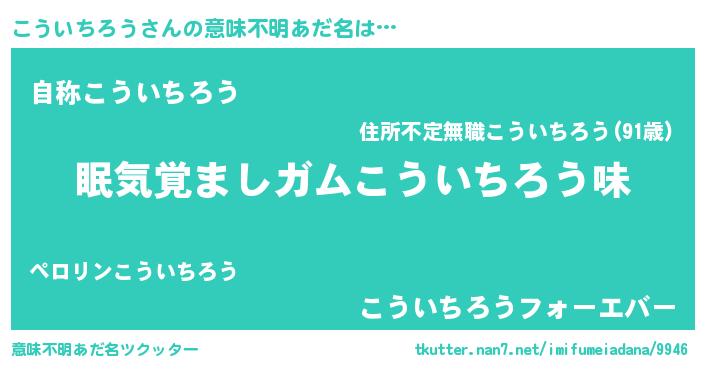 | 男性向けラノベタイトル風あだ名 | 『うちのこういちろうが世界を掌握している!』 |